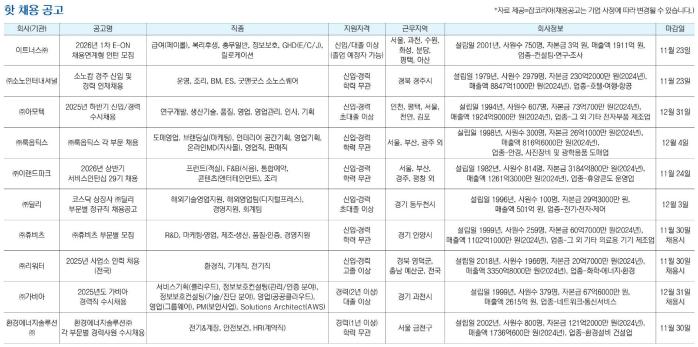 * 자료 제공=잡코리아(채용공고는 기업 사정에 따라 변경될 수 있습니다.)