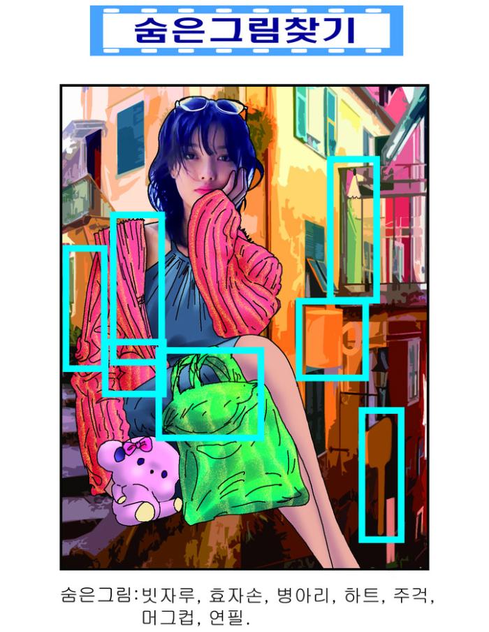 숨은 그림 : 빗자루, 효자손, 병아리, 하트, 주걱, 머그컵, 연