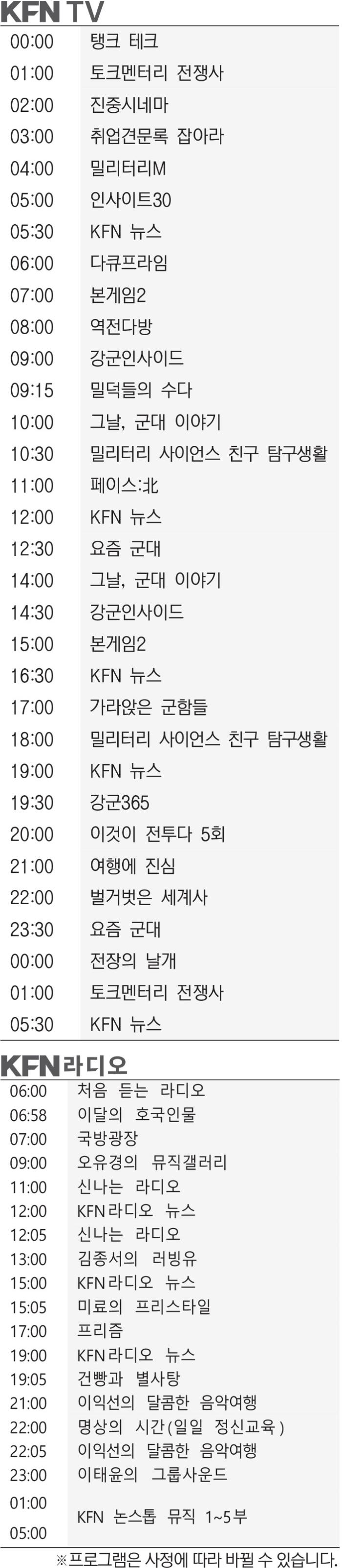 KFN 편성표 (2025년 11월19일)