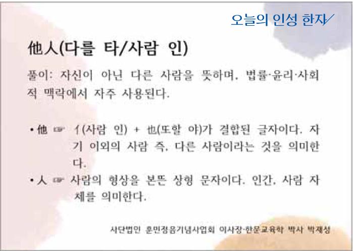 [오늘의 인성 한자] 타인