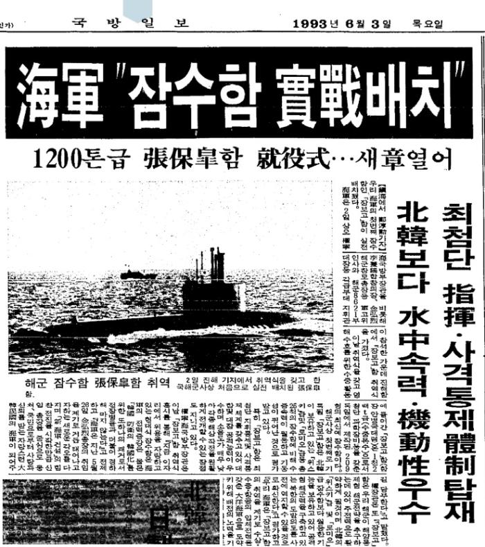 우리 군이 잠수함 시대의 개막을 알린 해는 1993년입니다. 해군은 이 해 6월 2일 진해항에서 해군의 첫 번째 잠수함인 ‘장보고함’의 취역식을 가졌습니다. 국방일보는 취역식 다음날인 6월 3일자 1·3면 두 개 지면에 관련 기사를 비중하게 보도했습니다.