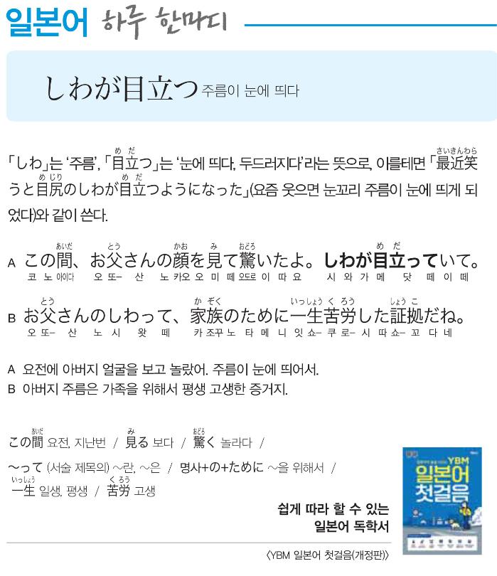 [일본어 하루 한마디] 주름이 눈에 띄다