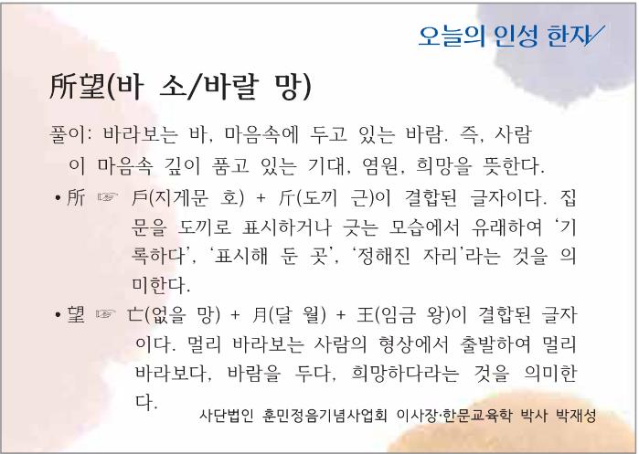 [오늘의 인성 한자] 소망