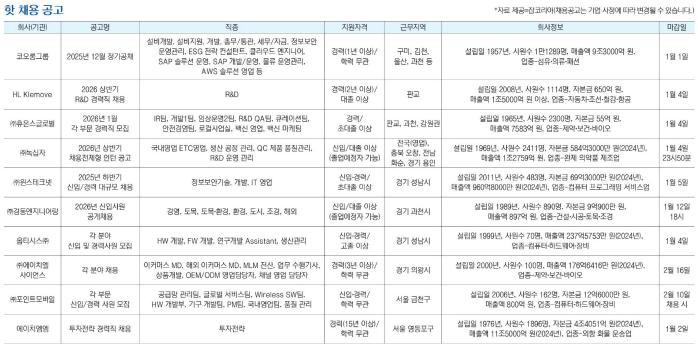 *자료 제공=잡코리아(채용공고는 기업 사정에 따라 변경될 수 있습니다.)