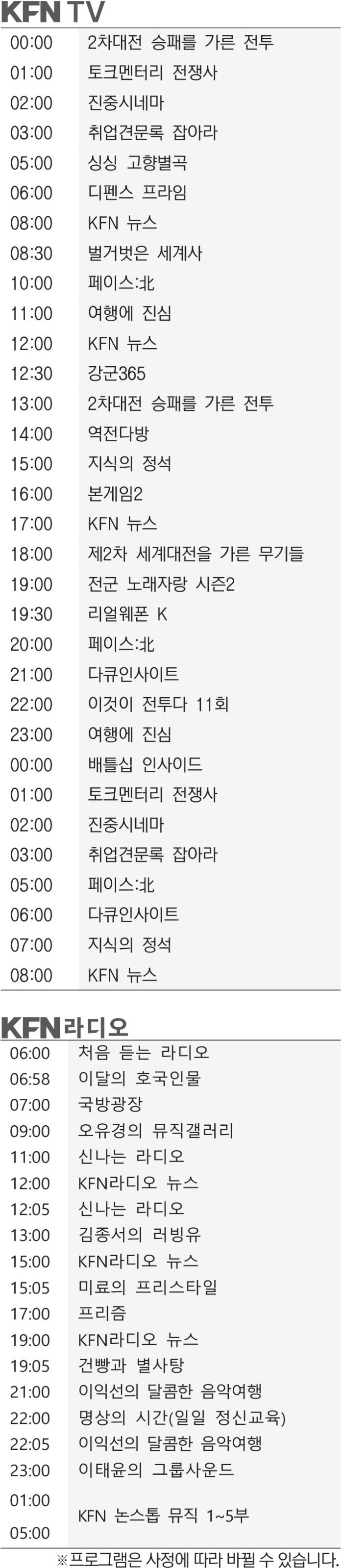 KFN 편성표 (2025년 12월29일)