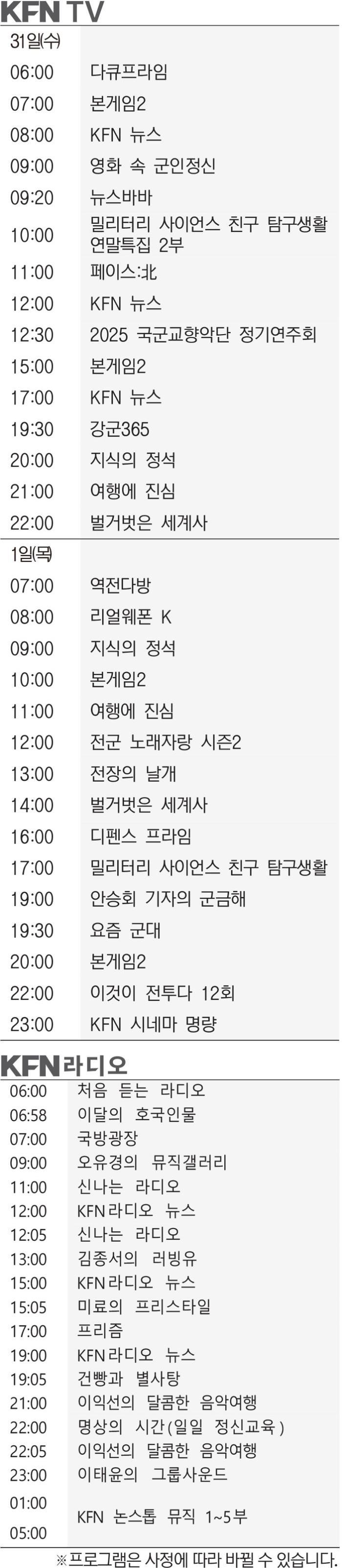 KFN 편성표 (2025년 12월 31일~2026년 1월 1일)