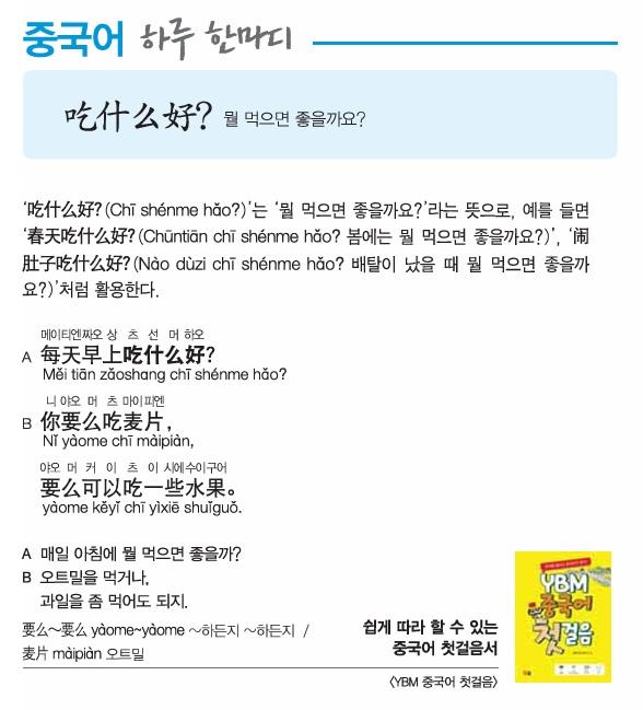 [중국어 하루 한마디] 뭘 먹으면 좋을까요?