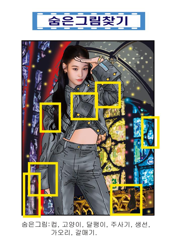 숨은 그림 : 컵, 고양이, 달팽이, 주사기, 생선, 가오리, 갈매기