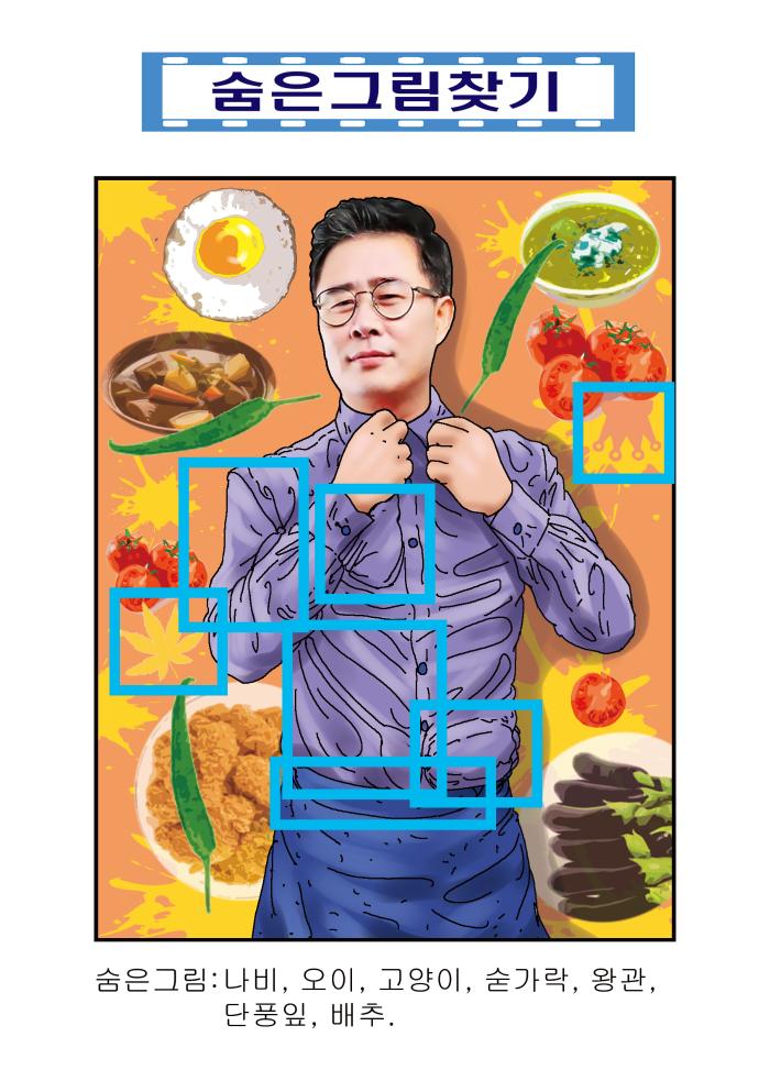 숨은 그림 : 나비, 오이, 고양이, 숟가락, 왕관, 단풍잎, 배추