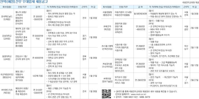 국방전직교육원 제공※ QR코드를 통해 국방전직교육원 채용정보 세부 내용을 확인할 수 있습니다. (인터넷 홈페이지 : www.moti.or.kr)※ 문의처 : 1588-9402 (내선 : 9469, 9473)