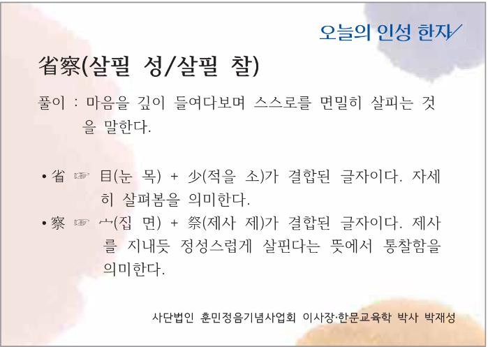 [오늘의 인성 한자] 성찰