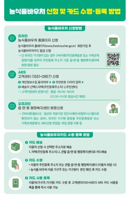 농식품 바우처 제도는 생계급여 수급 가구 중 임산부·영유아·아동·청년이 포함된 가구에 일정 금액의 이용권을 지원, 신선하고 영양가 있는 국산 농식품을 안정적으로 구매할 수 있도록 하는 제도다.