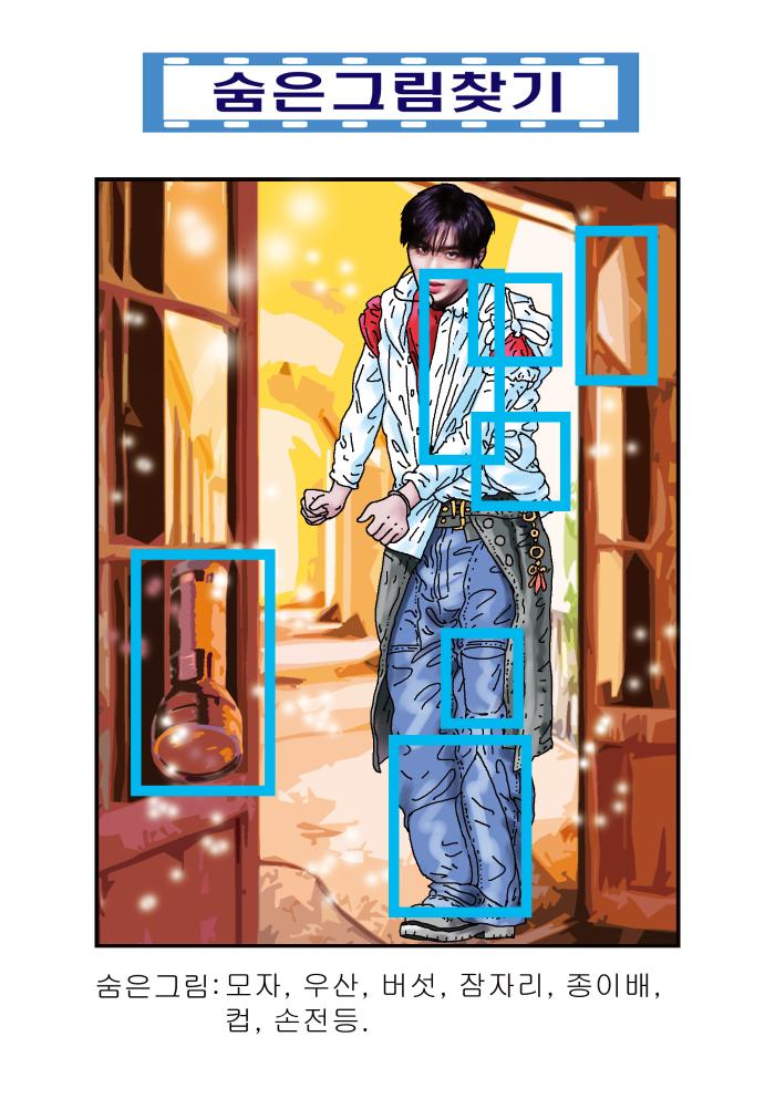 숨은 그림 : 모자, 우산, 버섯, 잠자리, 종이배, 컵, 손전등