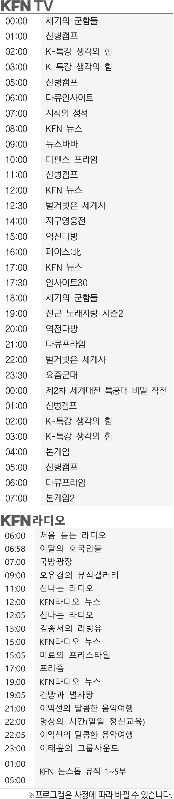 KFN 편성표 (2026년 2월3일)