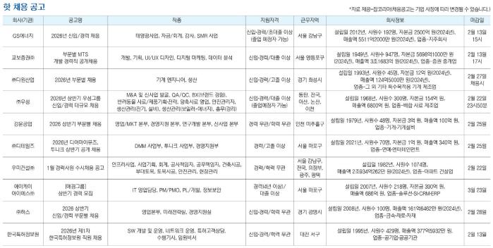 *자료 제공=잡코리아(채용공고는 기업 사정에 따라 변경될 수 있습니다.)