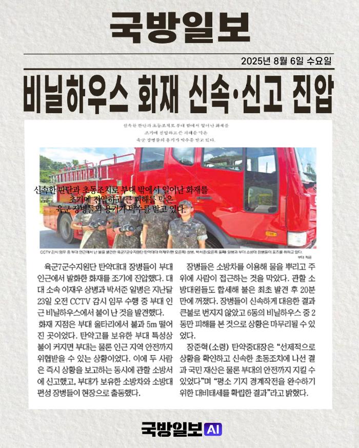 국방일보 신문에 소개된 장병들의 활약상을 소재로