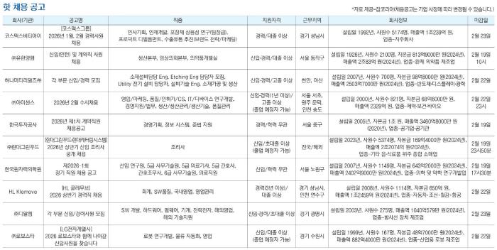 *자료 제공=잡코리아(채용공고는 기업 사정에 따라 변경될 수 있습니다.)