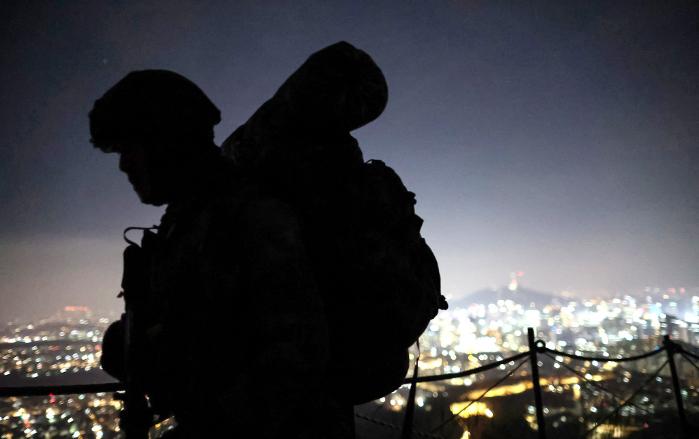 깊은 밤이 내려앉은 서울의 성곽길 위로 긴 행군 대열이 이어진다. 30㎏ 완전군장을 짊어진 장병들은 인왕산·북악산 능선을 따라 묵묵히 발걸음을 옮긴다. 잠들지 않는 도시의 빛을 벗 삼아, 육군수도방위사령부 수호신부대는 혹한기 훈련의 하나로 무박 2일 야간 전술행군을 실시했다. 서울 시민과 국민을 굳건히 지키기 위한 임무수행 능력을 배양하는 것. 수호신부대 장병들이 겨울 찬바람과 싸우며 묵묵히 전진한 이유다. 글=이원준/사진=이윤청 기자