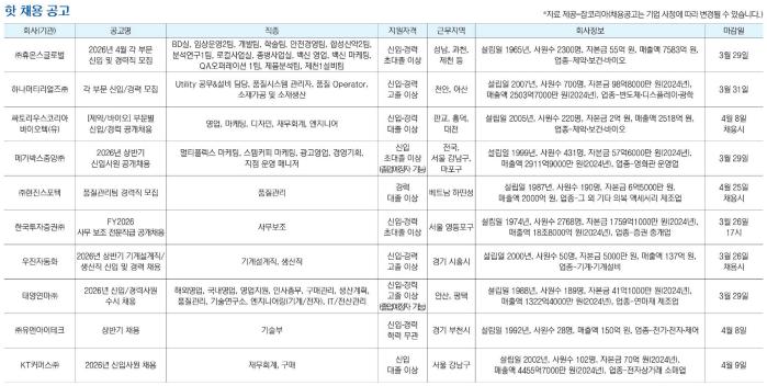 *자료 제공=잡코리아(채용공고는 기업 사정에 따라 변경될 수 있습니다.)