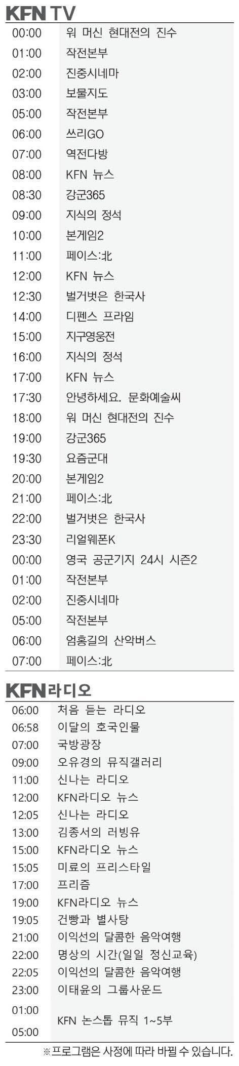 KFN편성표 (3월19일)