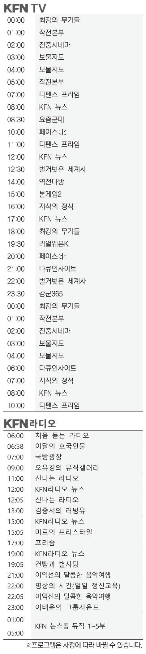 KFN편성표 (2026년 3월23일)