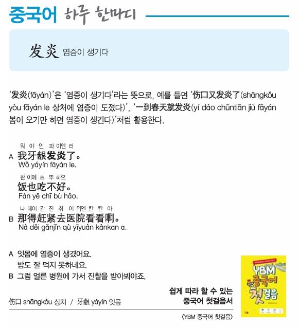 [중국어 하루 한마디] 염증이 생기다