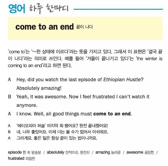 [영어 하루 한마디] 끝이 나다