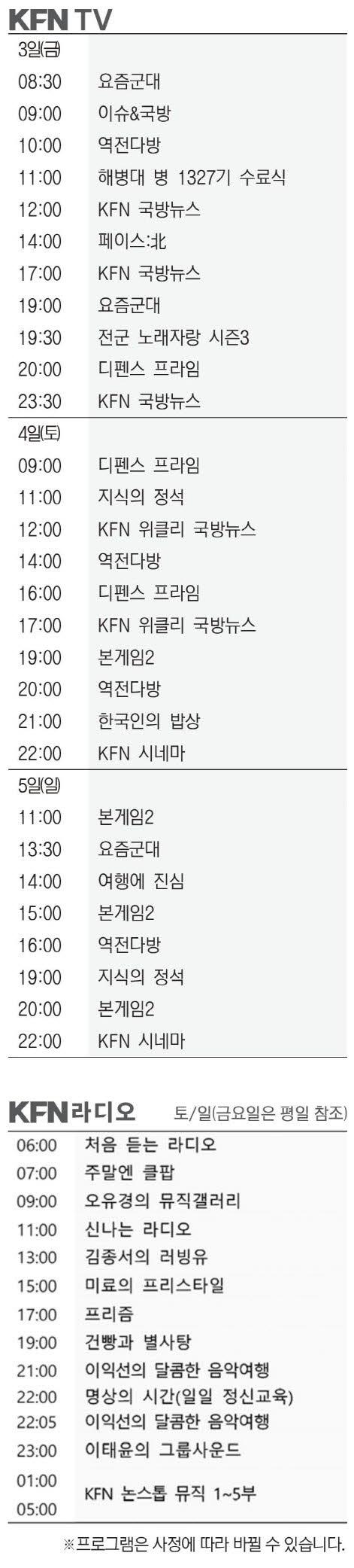 KFN편성표 (4월3일)