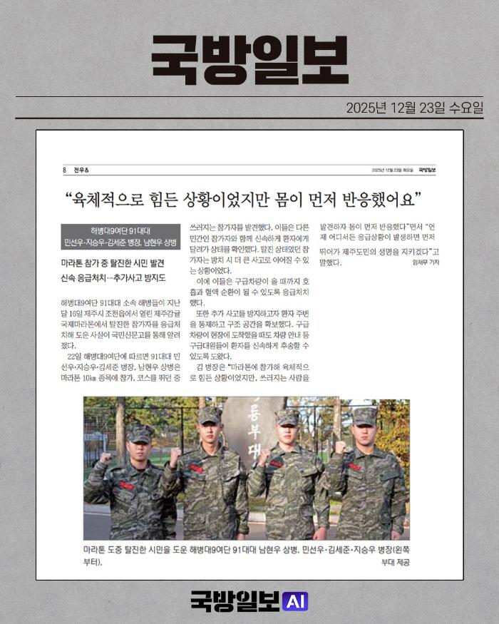 국방일보 신문에 소개된 장병들의 활약상을 소재로