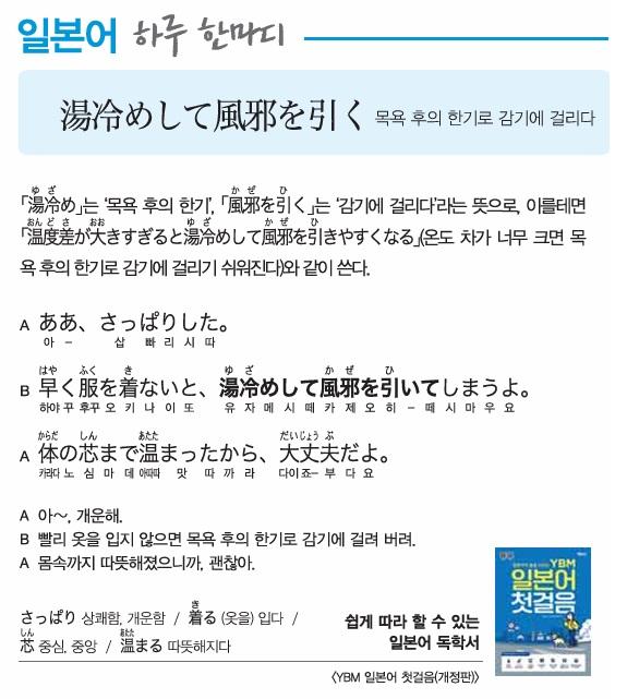 [일본어 하루 한마디] 목욕 후의 한기로 감기에 걸리다