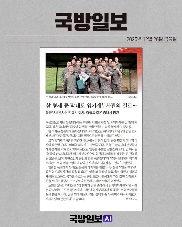 국방일보 신문에 소개된 장병들의 활약상을 소재로