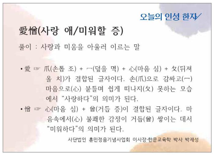 [오늘의 인성 한자] 애증