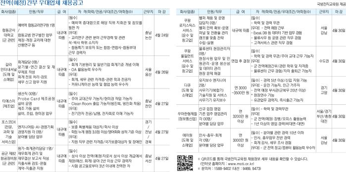 ※ QR코드를 통해 국방전직교육원 채용정보 세부 내용을 확인할 수 있습니다. (인터넷 홈페이지 : www.moti.or.kr) ※ 문의처 : 1588-9402 (내선 : 9469, 9473)