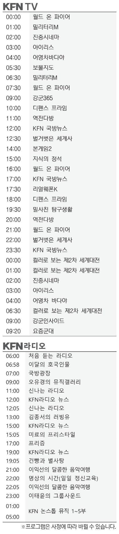 KFN편성표 (2026년 4월21일)