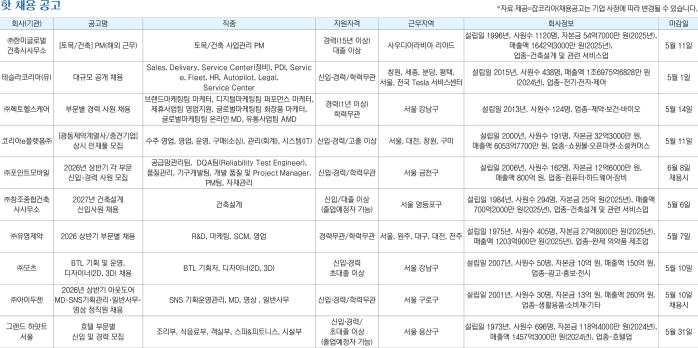 *자료 제공=잡코리아(채용공고는 기업 사정에 따라 변경될 수 있습니다.)
