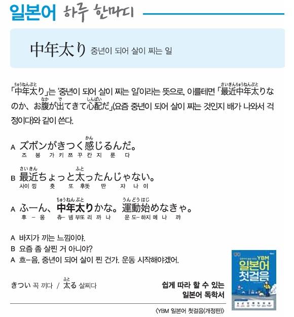 [일본어 하루 한마디] 중년이 되어 살이 찌는 일