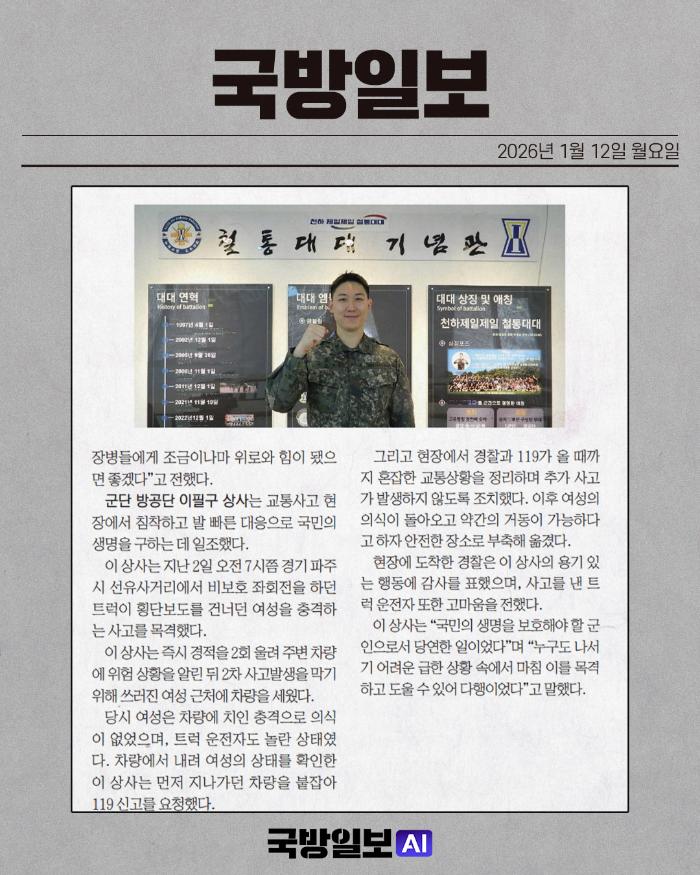 국방일보 신문에 소개된 장병들의 활약상을 소재로