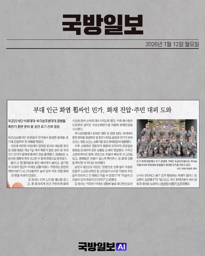 국방일보 신문에 소개된 장병들의 활약상을 소재로