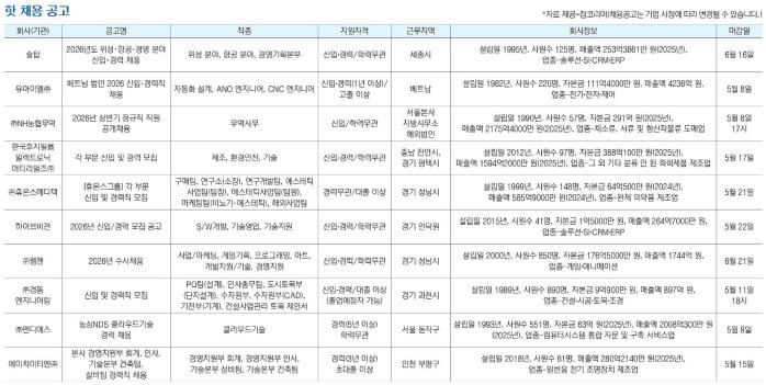 * 자료 제공=잡코리아(채용공고는 기업 사정에 따라 변경될 수 있습니다.)