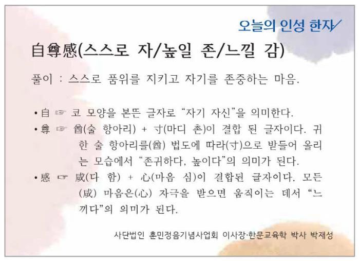 [오늘의 인성 한자] 자존감